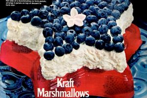 This star-shaped dessert seems so very American. It starts with red Jello, and has a white layer with marshmallows, then is topped with blueberries — a fruit that is native to North America.