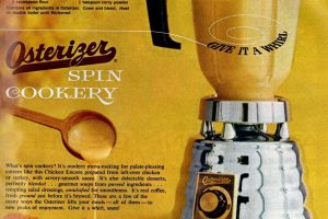 Osterizer Spin Cookery What’s spin cookery? It’s modern menu-making for palate-pleasing entrees like this Chicken Encore prepared from left-over chicken or turkey, with savory-smooth sauce.